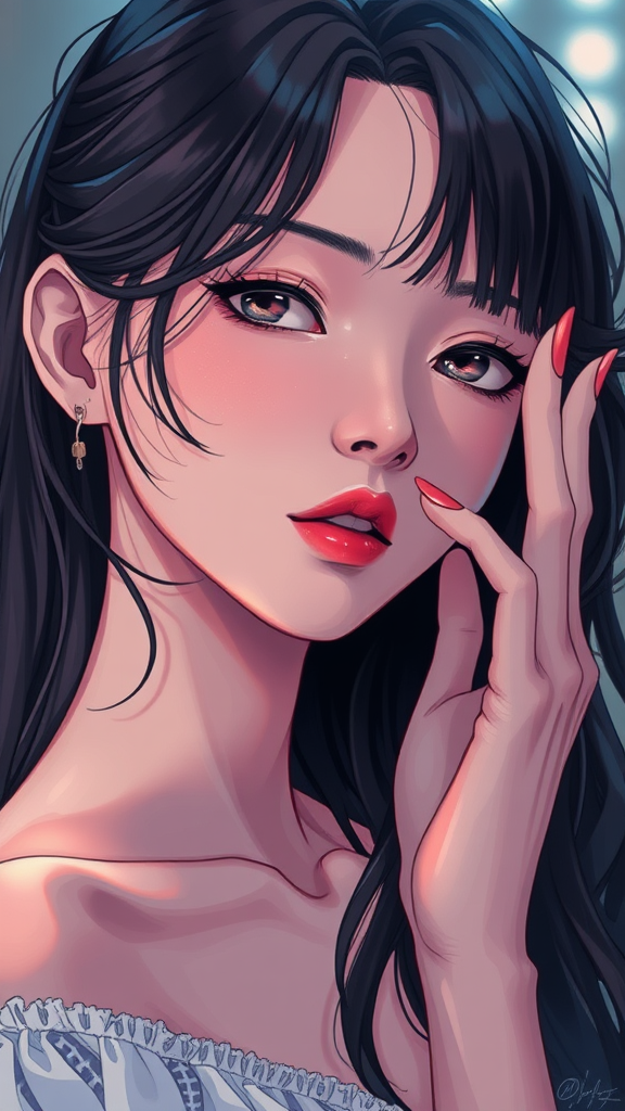 Portrait of a woman inspired by anime and crafted in the stylistic blend of Ghibli and Akihiko Yoshida, set in a cyberpunk, synthwave, and sci-fi world. The image captures her with soft light, showcasing finely detailed and elegant features, presenting perfect art in a highly detailed manner. Elements of low resolution and art imperfections are present, such as text errors, missing or extra digits, cropped edges, decreased quality, and jpeg artifacts. The anatomy is whimsically flawed with extra limbs or digits, hands and feet drawn hastily, with parts disfigured, out of frame, or tiled. The art appears blurry and misshaped, with signs of mutations or errors, resulting in an intriguing combination of beauty with unconventional features. Despite the presence of watermarks or artistic defects, the image remains captivating, blending elegance with an otherworldly ambiance.