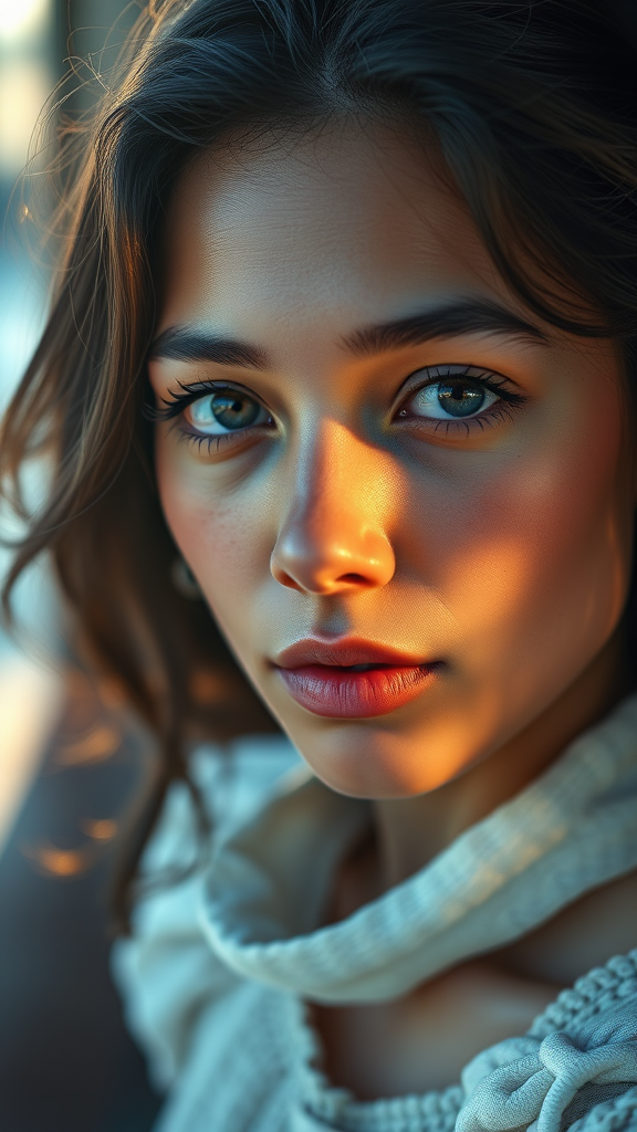 Portrait of a young woman, detailed artistry reminiscent of Joaquin Sorolla, gentle daylight, 85mm lens perspective, sunlit glow on her features, cinematic illumination, vibrant reflections, fine art photography, breathtaking surroundings, hyper-realistic style, computer-generated imagery, rendered with octane and raytracing techniques.