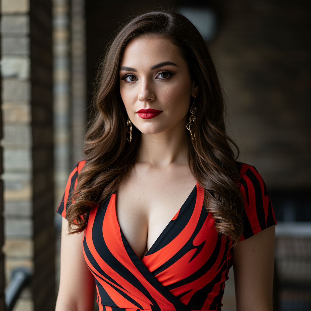 Portrait of an alluring woman in a bold, eye-catching ultra mini dress, exuding confidence, professional macro photography, richly detailed, extreme close-up with sharp focus, utilizing natural light, captured on a Canon EOS 5D Mark IV DSLR, f/8 aperture, 1/250 second shutter speed, ISO 100, high-quality, award-winning, created by Artificial Nightmares, meticulous attention to detail, vibrant, captivating, distinctive, innovative visual storytelling, avoiding dull, uninspired, ordinary, or grainy elements.