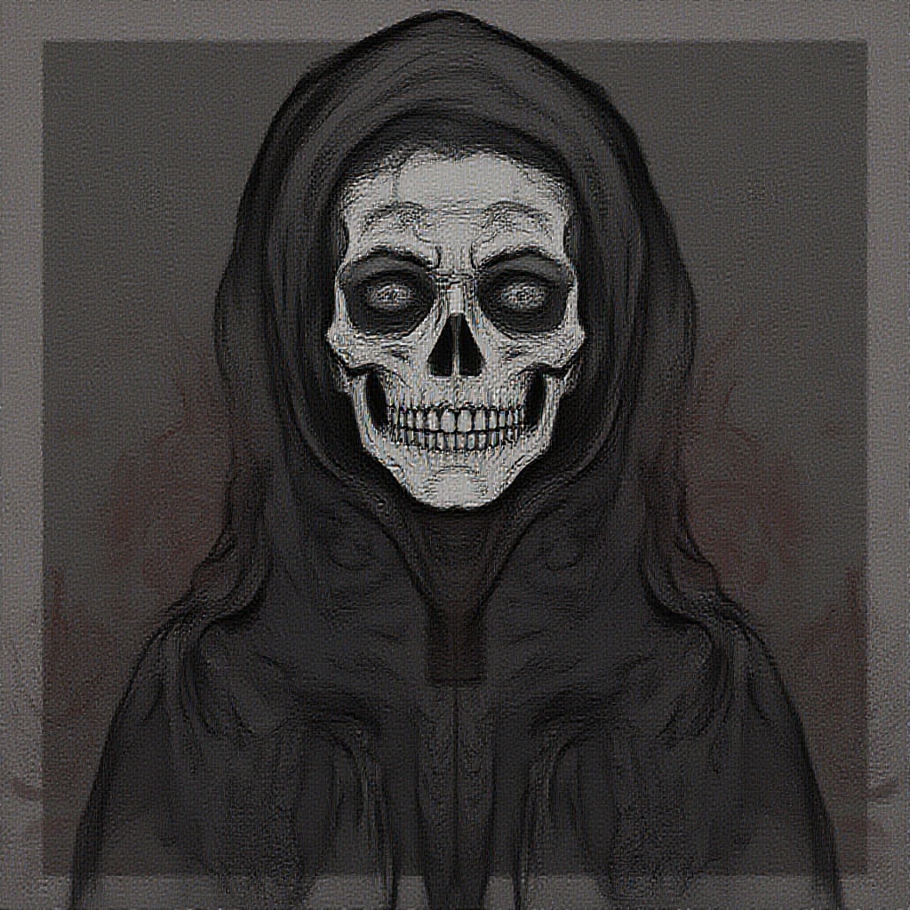 Portrait of an Enigmatic Figure, Wearing a Head Scarf, Inspired by Día de los Muertos, with Gothic Accents, Featuring a Duplicated Expression with Mutated Features, a Long Neck, and Extra Fingers. The Image is Low-Resolution with Elements Out of Frame, Blurry Details, and Visual Artifacts. There Are Hints of Logos and Letters, with a Cartoonish Style and Split Imagery.