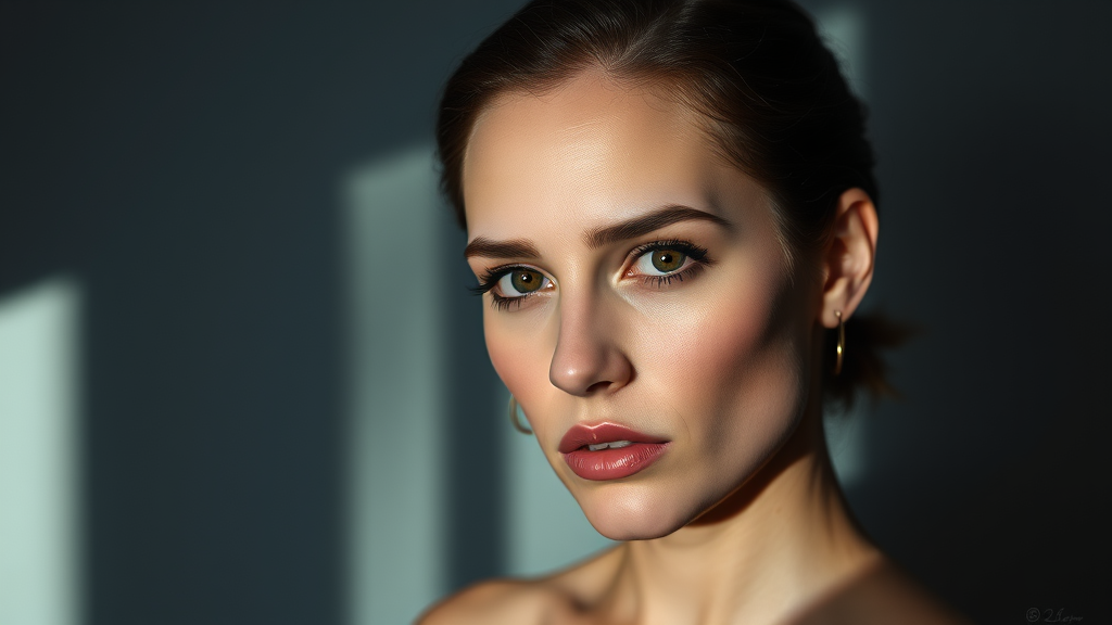 Portrait of Natalie Portman, minimalist setup, dramatic shadows, digital painting by Chuck Close, high-resolution 8k, intensely emotive