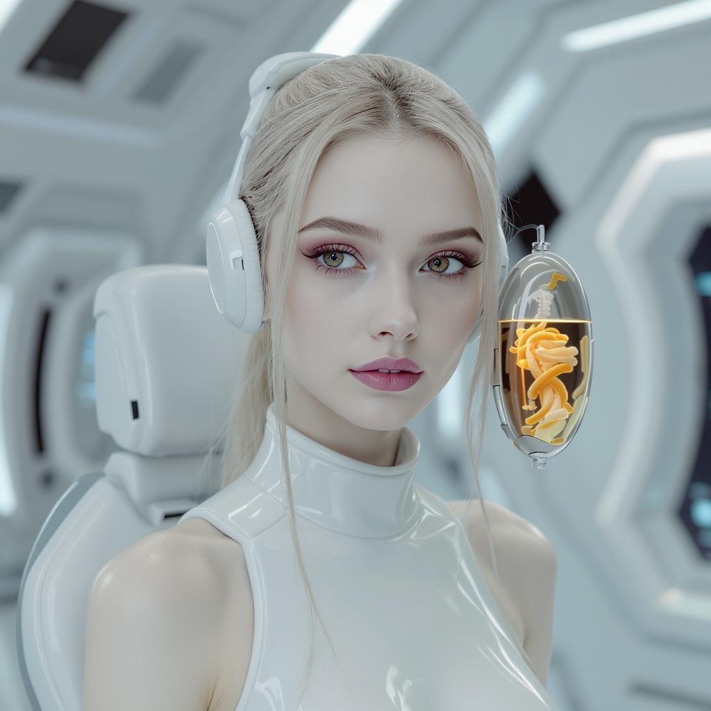 Portrait, stunning face, innocent expression, beautifully slender girl, vibrant hair color, captivating pose, in a futuristic setting, girl gazes into the camera, placed in a sleek sci-fi white lab, with a cutting-edge rejuvenation capsule, exceptional quality, ultra-high resolution, photorealistic, 8k, hyper-realistic, Rembrandt lighting, avoiding elements like hild, baby, kid, incorrect anatomy, disfigurement, extra or missing limbs, poorly drawn features, low quality, jpeg artifacts, mutations, or any distorted imagery.