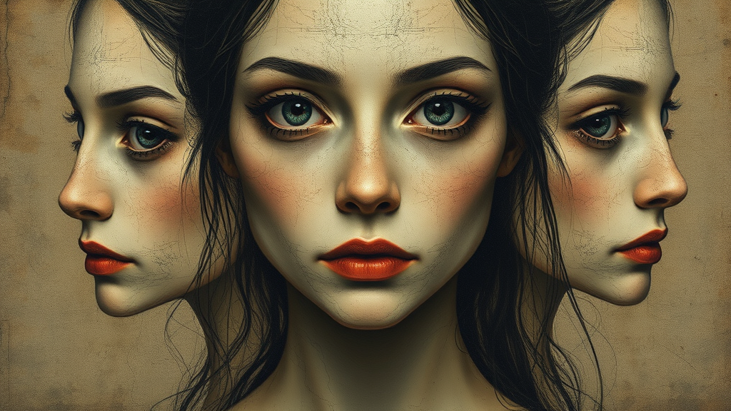 Portraits of a woman in an oil painting style, featuring a grainy texture and minimalist avant-garde drawing elements. The woman has empty eyes, and the artwork carries many intricate details reminiscent of an old masterpiece by Diego Velazquez. The composition is set in a 16:9 aspect ratio, with a touch of creative flair and stylization at a high level to evoke an elegant yet haunting visual experience.
