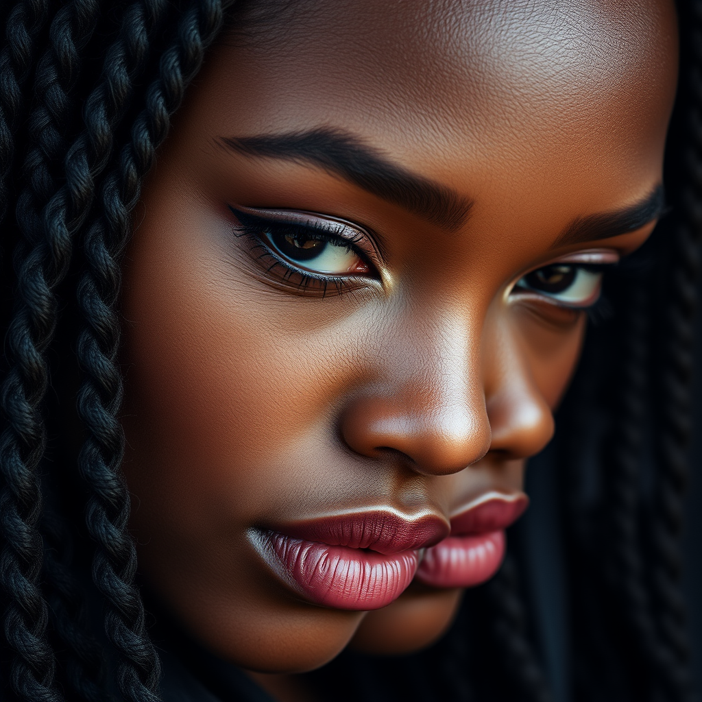 Portraits of elegant sorrow, professionally shot DSLR photos of beautiful women with braids, trending on high-end art websites, 8K UHD, hyperdetailed close-up shots, soft lighting on intricately detailed faces, beautiful skin, high-quality, distortion-free portraits with excellent focus.