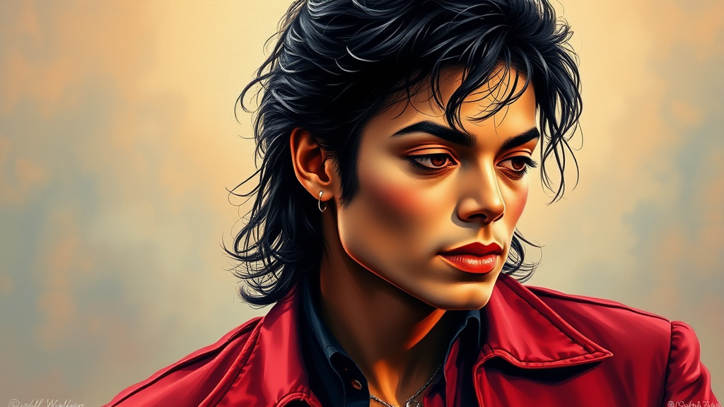 Poster art portrait of Michael Jackson by Michael Whelan, Rossetti Bouguereau, and Artgerm, featuring a retro and nostalgic style with a slightly old-fashioned touch, capturing his iconic essence with a harmonious blend of vibrant colors and delicate details, evoking timeless elegance and charismatic presence.