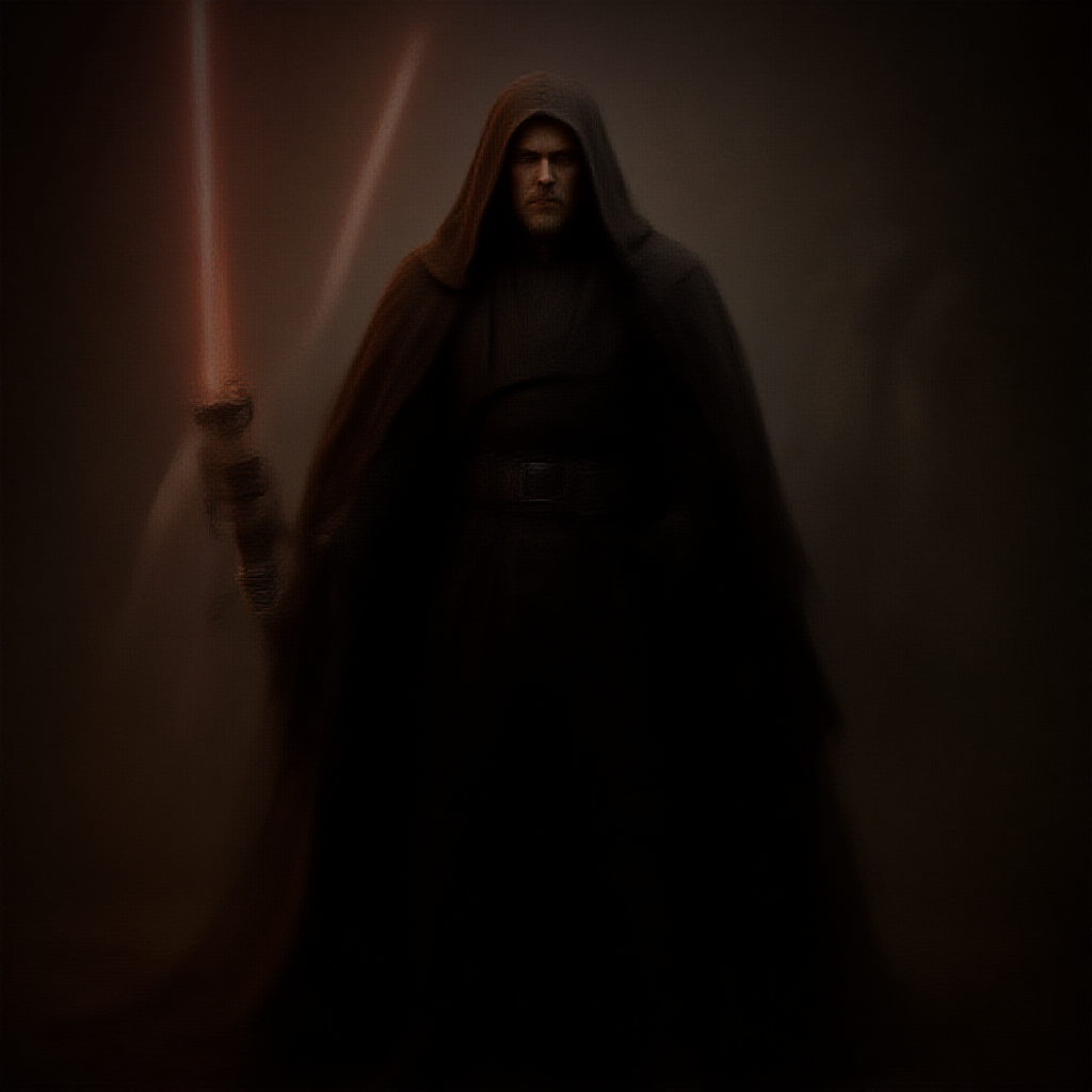 Poster of a Sith Lord from Star Wars, wide angle, sharp focus, full body shot, featuring extreme details and cinematic elements. With beautifully color-graded tones, captured through a 70mm lens, utilizing deep depth of field, shutter speed at 1/1000, and aperture at f/2 for remarkable white balance and resolution. The scene is enhanced with massive, moody lighting, employing natural and studio lighting techniques like half rear lighting, backlight, and volumetric effects. The composition uses advanced techniques such as ray tracing global illumination, screen space reflections, and chromatic aberration for a hyper-realistic look. The Sith Lord is positioned in a dynamic pose, presented with intricate details and color-coded attire, accentuated by scattering and glowing shadows. The artwork incorporates elements like post-processing, tone mapping, and anti-aliasing for a super-detailed digital painting. The overall feel merges the best of CGI, 3D, and anime illustration, creating an ultra-detailed, photorealistic concept art of the iconic characters with elegant lighting and ambient occlusion.