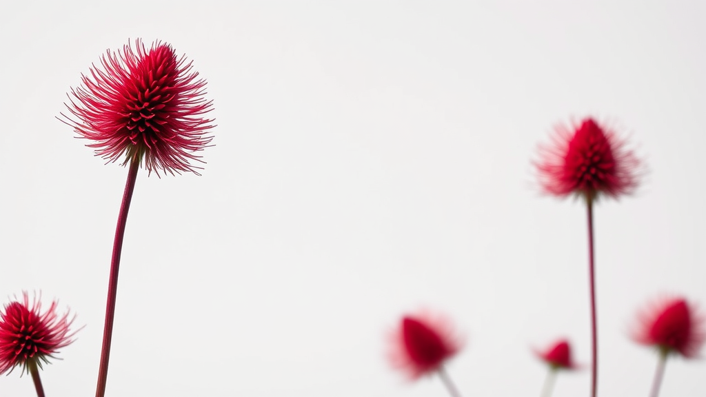 Prize-winning minimalist photograph featuring crimson spikelets against a pristine backdrop, subtly altered to enhance elegance while maintaining the central theme.