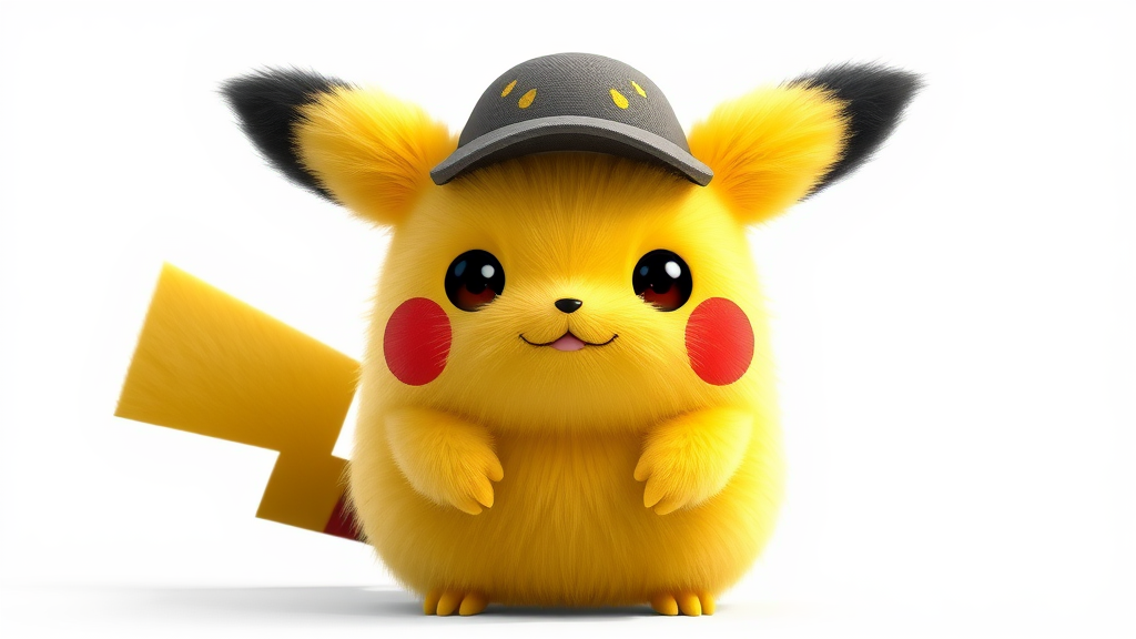 Promotional art of an adorably cute Disney Pixar-inspired Pikachu with a round, fluffy, and very furry appearance, set against a white background. This iconic film character is reminiscent of the 90s Pikachu, merged with elements of Detective Pikachu, showcasing detailed fur. The concept artwork is a 3D render, official and promotional in style, influenced by artists such as Artgerm, Ilya Kuvshinov, and Katsuhiro Villeneuve, with touches from Jeremy Lipkin, Michael Garmash, and Rob Rey. The Pikachu design imbues elements of Disney Pixar's Zootopia, with subtle creative modifications to enhance its charm and appeal.