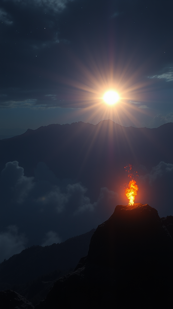 Radiant like a solitary flame in the depths of night dreamlike, hyperrealistic, octane render, artwork reminiscent of Artgerm, intricately detailed illustration, ethereal atmosphere, digital masterpiece, excessively detailed art, conceptual brilliance, harmonizing colors, trending on artstation, cgstudio, the pinnacle of beauty in art, strikingly dramatic, nuanced details, prize-winning artwork, stunning landscapes, unreal engine, 8k, --ar 1:2