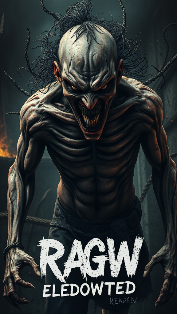Rage embodied, dark and ominous backdrop, intense horror, raw and chaotic composition, filmic, highly dramatic, digital artwork, emotionally deep, up-close, low resolution, unfocused, synthetic, gritty, repetitive elements, inaccurately rendered anatomy, distorted limbs, skewed proportions, overlay text, insignia, branding, artist mark, label, signature, inferior quality artifacts, image clipped, obscured, flawed anatomy, misshapen body, distorted facial features, irregular teeth, grotesque deformities.