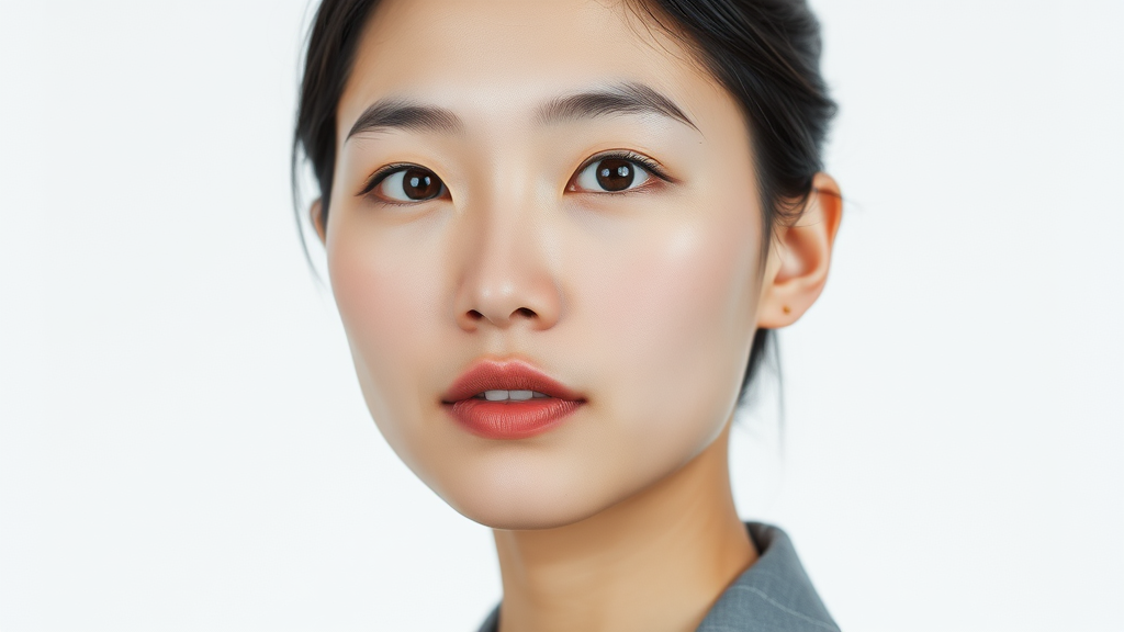 RAW image capture, Asian individual, self-assured, attractive, professional appearance, slender physique, plain white backdrop, ultra-high definition, digital SLR clarity, gentle illumination, superior resolution, subtle film texture, captured with a Fujifilm XT3 camera, subtly enhanced with vibrant color tones.
