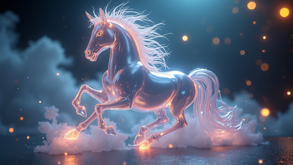 In the digital realm of lighting simulation, algorithms meticulously trace the intricate dance of photons, bringing to life the captivating phenomenon of ambient occlusion. Initially emerging as a static texture, it has since evolved to dynamically interact with indirect lighting, enhancing the realism of radiosity in virtual environments. Envision a beautiful glass stallion, its ethereal form shimmering with translucence, reflecting and refracting light in complex patterns. The scene unfolds in HDR, unfolding stunning detail and clarity. A seamless fusion of technology and artistry crafts a mesmerizing visualization, capturing the elegance and intricacy of this digital masterpiece.