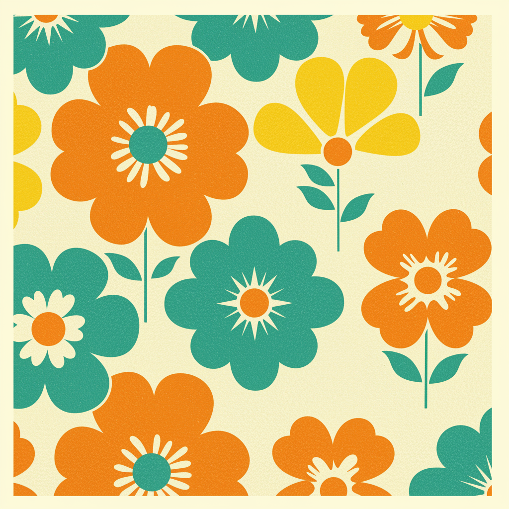 Retro floral motif :: vintage pattern :: vibrant hues :: minimalist design --aspect ratio 2:3 --high quality --style 750