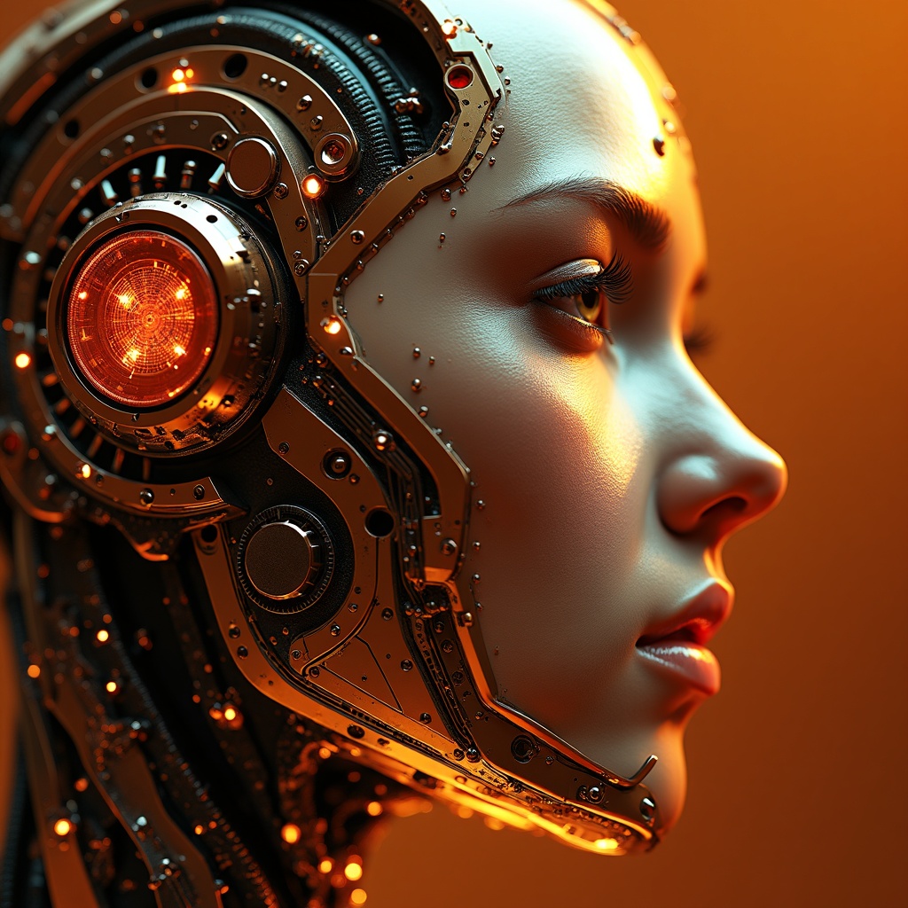 View this AI-generated image featuring robot human synergy 2 0 beta modular portraits in illusory wallpaper style vibrant realism detailed close ups deep gold and crimson hues ultra hd image with mosaic inspired detail maintaining a fusion of technology and organic forms infused with rich textures a