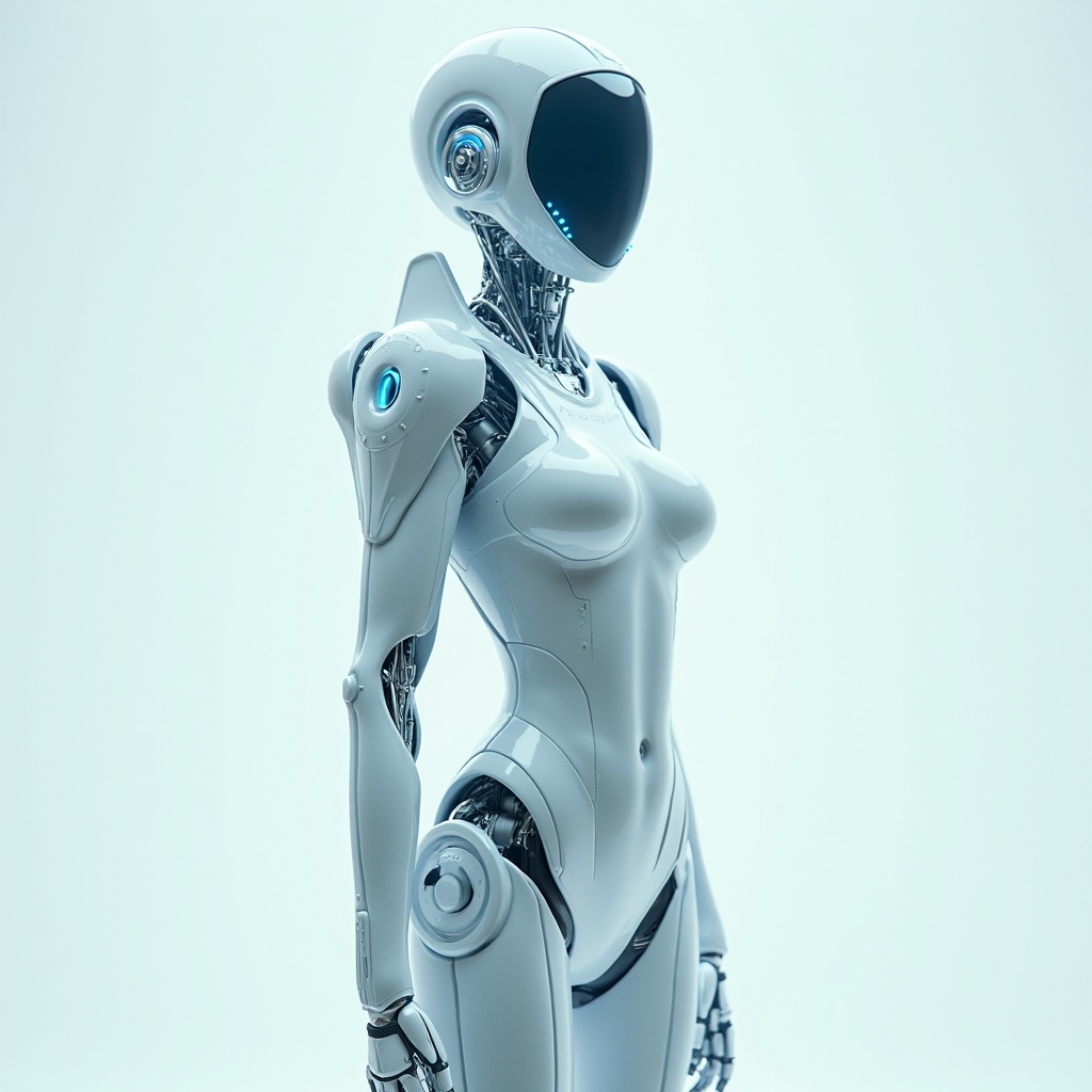 robotic visage futurism cyborg ultra-futuristic latex space suit with glowing transparent tubes intricate mechanics medium perspective distant view angled from thigh to waist piercing blue eyes advanced technology hard surface fashion sharp focus high detail cinematic pure white palette minimal futuristic aesthetic realistic ultra-realistic photorealistic cinematic lighting studio lighting complex mechanics glossy texture octane render highly detailed 3d unreal engine ambient lighting 8k resolution 4k output polished
