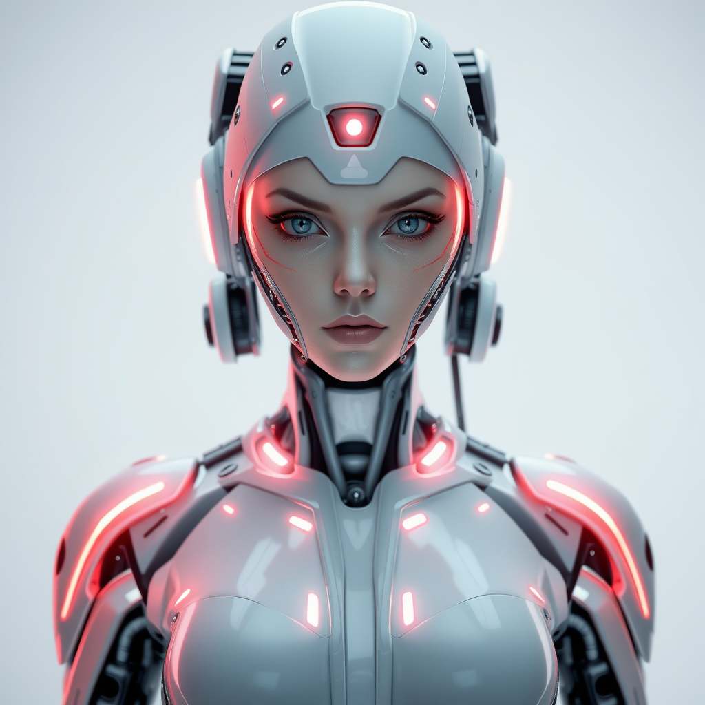 robotic visage futurism cyborg sleek latex space attire accentuated with translucent illuminated tubing intricate mechanics medium perspective distant perspective capturing from thigh to waist azure gaze advanced technology rigid surfaces cutting-edge fashion crystal clarity intricate detail cinematic approach alabaster hue minimalist design futuristic hyper-realism photorealistic cinematic lighting studio illumination complex mechanics durable surfaces octane render ultra-detailed rendering 3d unreal engine lighting high-definition polished