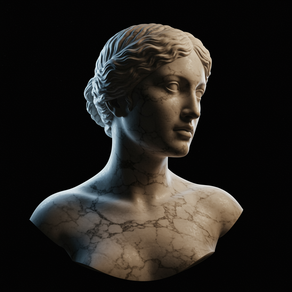 Rojo Bilbao Marble sculpture of a female, high detail and professional photo, ultra high resolution and highly detailed 8K wallpaper, physics-based rendering with cinematic lighting, photorealistic masterpiece emphasizing realism and contrast, high-definition digital art, detailed and sharp RAW photo captured with a d850 film and Kodak Portra 400 camera, f1.6 lens captures rich colors and dramatic lighting akin to Cinestill 800. Features a CGI aesthetic with 3D elements, rendered with Octane for a lifelike appearance, while maintaining artistic elements from illustration and digital painting. The composition avoids imperfections like poorly drawn features or mutated anatomy, ensuring a flawless representation with harmonious proportions and expressive details.