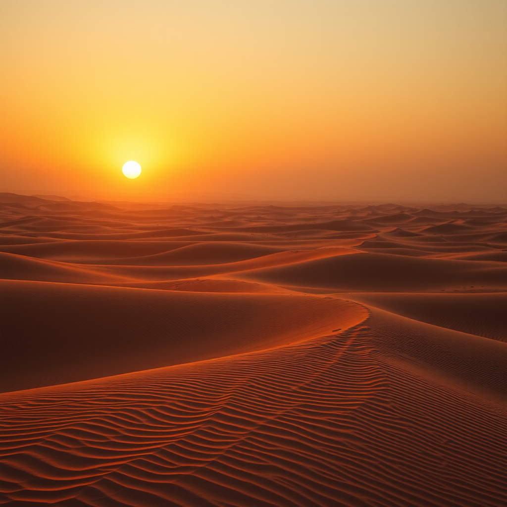 Saharan desert landscape at sunrise, 4k ultra realism, inspired by Anton Gorlin, popular on artstation, crystal-clear focus, studio-quality image, elaborate textures, exceptionally detailed, reminiscent of styles by Greg Rutkowski.