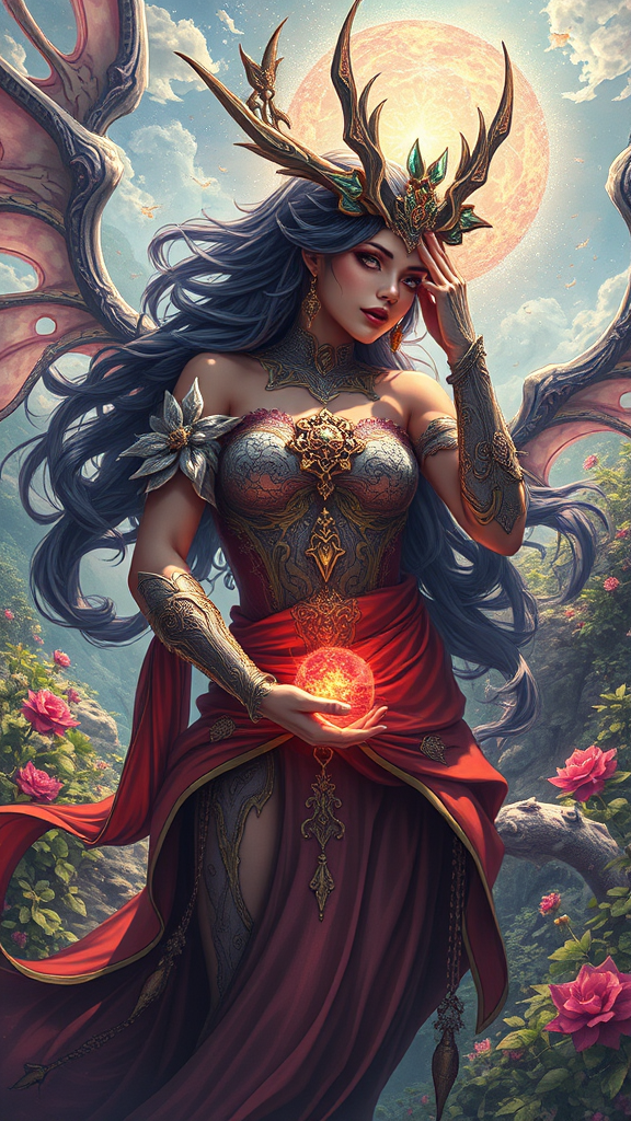 Sango fantasy, fantasy magic, intricate, sharp focus, illustration, highly detailed, digital painting, concept art, matte, in the style of Artgerm, Paul Lewin, and Kehinde Wiley, masterpiece, vibrant colors, mystical atmosphere, enchanting landscape, ethereal beings, harmonious proportions, elegant hands, expressive faces, balanced composition, fluid anatomy, graceful limbs, captivating storytelling, mythical creatures, vivid imagination.
