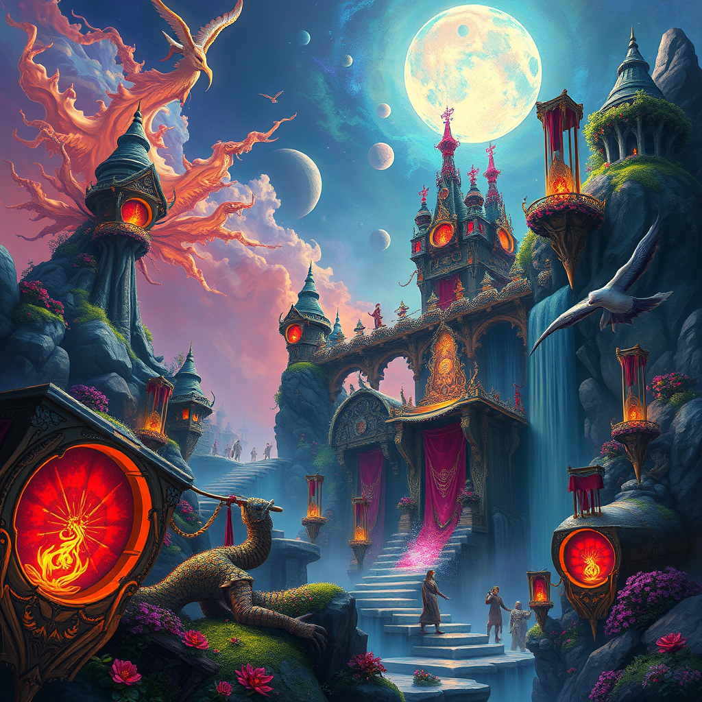Sango fantasy realm, mystical magic, vivid and intricate, sharply focused illustration, highly detailed digital painting, imaginative concept art, matte finish, inspired by the styles of Artgerm, Paul Lewin, and Kehinde Wiley, masterful composition, ethereal and vibrant elements, mythical characters and landscapes.
