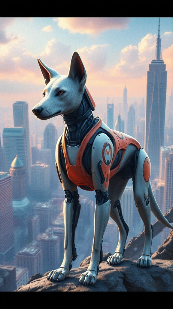 scenic vista landscape cyberpunk metropolis of highly detailed watercolor pastel mix ultra realistic, robotic canine, hyperdetailed entire body visible, looking from below, natural fur, pair of dogs, animal pelage, exceeding four animal limbs, cropped, low-resolution, user identification, blurry, logo, watermark, title, multiple perspective, reference sheet, curvaceous, full-figured, stout, misaligned eyes, garment cutout, side slit, flawed hand, additional leg, extra arm, imperfect foot, text, name, negative space, deep negative tones, flawed hand visuals, very poor image negative version 1.3.