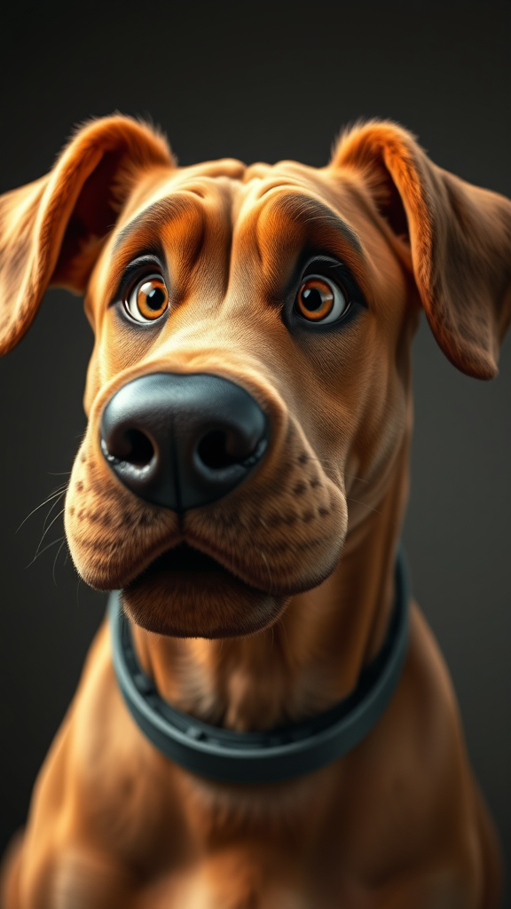 Scooby Doo, charismatic portrait, light brown canine with expressive eyes, sharp focus, digital illustration, centered subject, imaginative concept art, enhanced post processing, captivating dynamic lighting, hyper-detailed texture, friendly and adventurous essence, playful demeanor.
