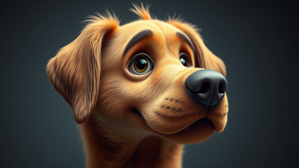 Scooby Doo-inspired dog portrait, featuring a whimsical canine with light brown fur, captured in sharp focus; this digital art piece highlights a single subject in concept art style, enhanced through post processing. The image boasts dynamic lighting and ultra-detailed features, bringing the playful essence of Scooby Doo to life with a touch of artistic flair.
