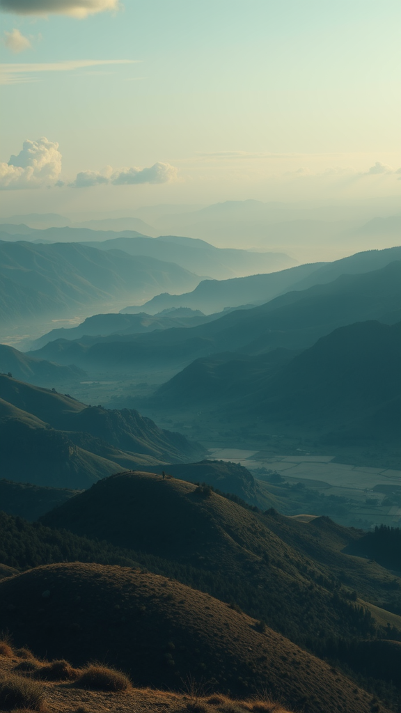 Serene terrain, peaceful panorama, cinematic quality, ultra-high definition, intricately detailed, hyper-realistic, octane-like illumination, with gentle creative twists embracing the tranquility.
