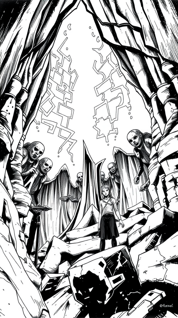 Seven Sinful Forces, ink illustration with monochromatic walnut hues, graphic novel aesthetic, possibly contemporary setting, extensive use of hatching and cross-hatching for texture, and bold shading for depth and dimension.
