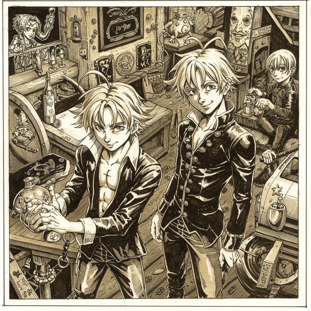 Seven Sins, Pen and ink drawing with monochromatic coffee hues, graphic novel aesthetic, contemporary setting, extensive utilization of hatching and cross-hatching for texture, and dramatic shading for depth and dimension.