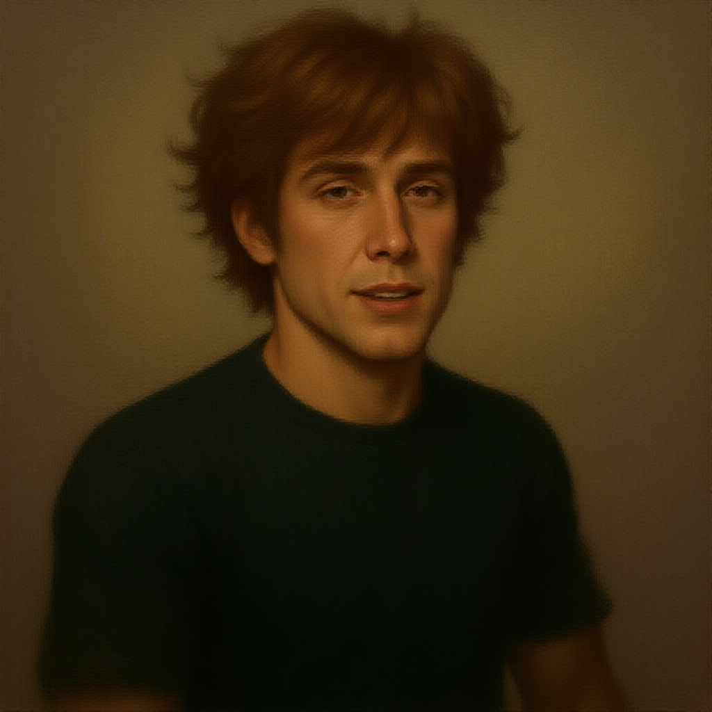 Shaggy from Scooby Doo, portrait, dark green t-shirt, medium brown tousled hair, athletic build, vibrant focus, digital painting, singular character, concept illustration, refined details, dramatic lighting, hyper-realistic, Scooby Doo influence.
