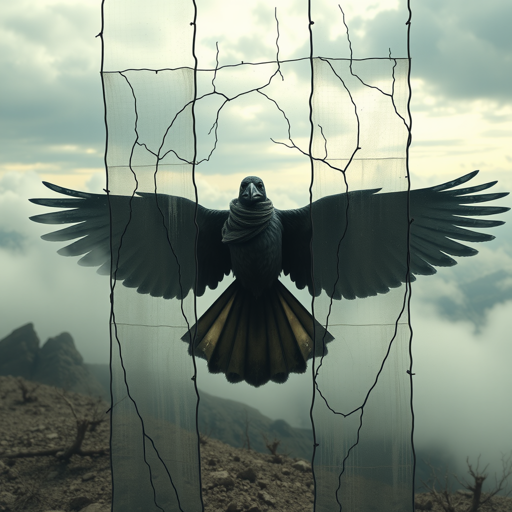 She feels like a bird trapped within invisible walls, yearning for the freedom to soar but confined to a barren, dystopian world where the sky is only a distant memory.