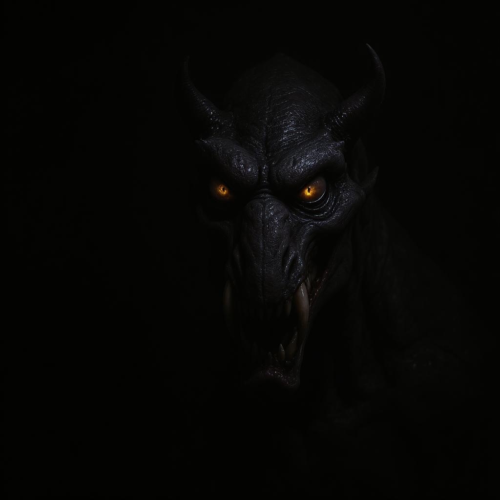 Sinister being, broad snout, piercing yellow eyes, chilling presence, shadowy and eerie atmosphere, hyperrealistic detail, highly intricate, set in ultra-high definition, nightmarish portrait, elongated proportions, enhanced textures, dim and unsettling environment, spine-chilling aura.