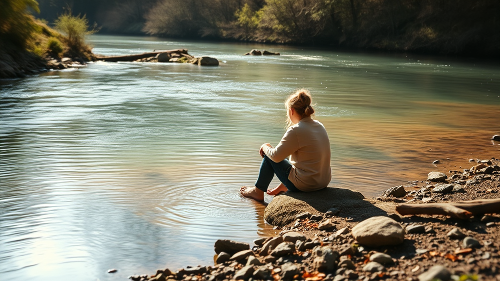 Sitting by the stream, silence flows gently, enveloping the mind with peace and the breath of the wild. Calm and dreamy, the scene is reminiscent of Renato Muccillo and Andreas Rocha’s tranquil waterscapes, captured in stunning detail, 8K clarity. The peaceful water reflects the serenity of nature, embodying stillness and tranquility. In the midst of this natural beauty, elements of the surreal blur the lines between reality and imagination. The world slows down, embracing imperfections. Colors may swirl unexpectedly, adding charm to the scene. Though obscured and abstract, the essence remains: harmony in chaos, beauty in flaws, capturing the ethereal spirit of nature's whispering streams.