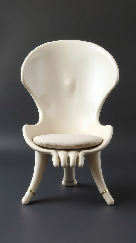 Skull-shaped chair design inspired by Dieter Rams, Frank Lloyd Wright, Achille Castiglioni, and Syd Mead, featuring a harmonious blend of minimalist aesthetics and organic curves. The chair embodies Rams' functional elegance, Wright's integration with the environment, Castiglioni's playful form, and Mead's futuristic touch. Its smooth, seamless surface mimics bone texture, providing both comfort and structural integrity. Subtle accents of metallic finishes and soft cushioning ensure practicality without compromising style. The chair is a statement piece, merging avant-garde design with timeless appeal, inviting both admiration and utility in any space.