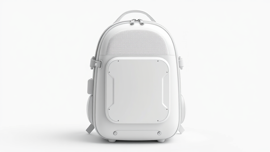 Sleek hardcase capsule-shaped white backpack, futuristic urban stormtrooper aesthetic, minimalist product design, intricate and textured surface, inspired by Dieter Rams and Apple, rendered in Octane 4K, displayed on a pristine white background.