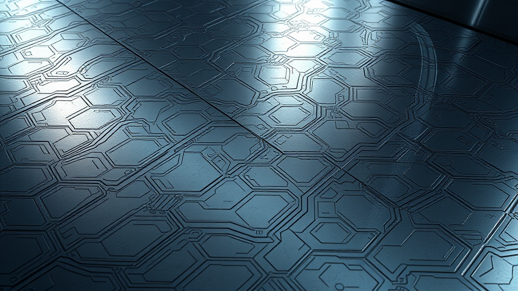 Sleek metallic surface glinting under the soft glow of subdued lighting, intricate patterns etched with precision, muted hues of silver and gray with occasional flashes of iridescent color, evocative of futuristic architecture, elongated and slender form extending vertically, radiating a sense of industrial elegance and modern sophistication, capturing the essence of advanced technology and minimalist design.