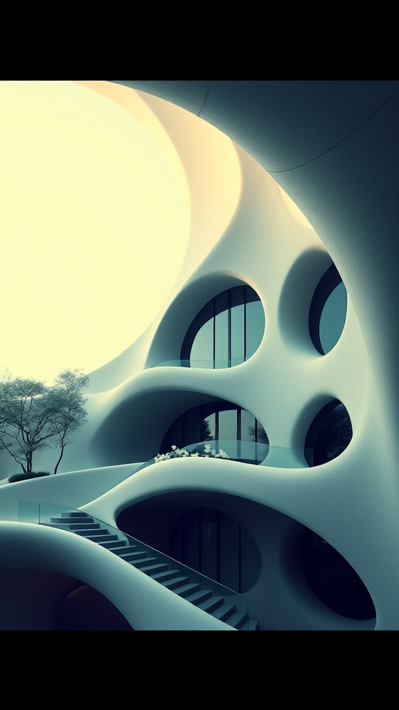 Sleek modern architecture blending the whimsical forms of Gaudi with minimalist aesthetics, featuring fluid lines and organic shapes, a harmonious fusion where simplicity meets artistic expression, evoking a sense of modern elegance and inspired creativity in a 3:4 aspect ratio.