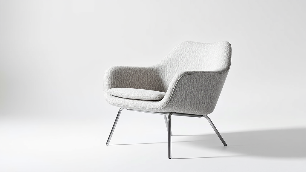 Sleek modern chair in a minimalist design, set in a bright white studio environment, photographed with a Hasselblad X1D II 50C using a 90mm lens, showcasing intricate texture and delicate stitching details.