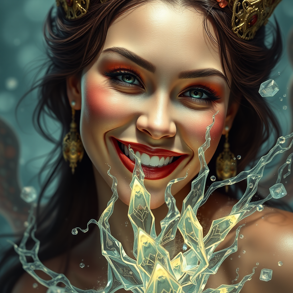 Smiling enchantress, breathtaking action scene of revenge, eledrae by taijen 3, in the style of Alberto Vargas, refined transformation, trompe l'œil illusionistic intricacies, surreal dreamscape, ethereal and mystical realism, unparalleled, hyper-detailed, abstract yet representational, crafted in Adobe Photoshop, inspired and artistic, deserving of accolades.