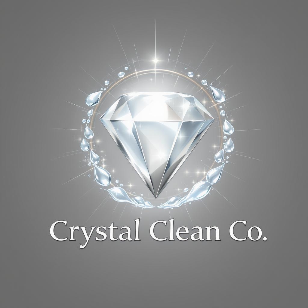 Sparkling Shine emblem for Crystal Clean Co. with a polished gem icon encircled by delicate water droplets and subtle sunbeam accents.