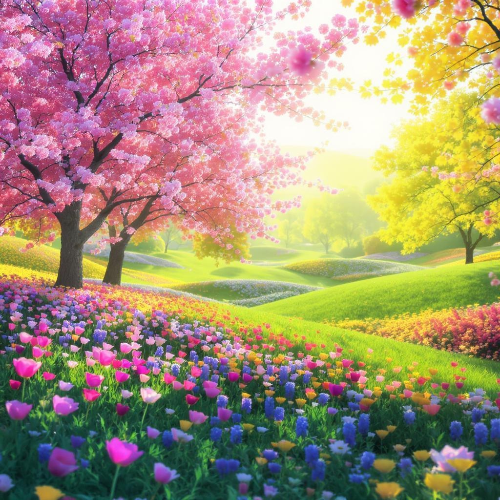 Springtime joy blossoms abundantly, capturing the essence of renewal with vibrant colors and a luminous atmosphere, as the world awakens from slumber in an elongated frame.