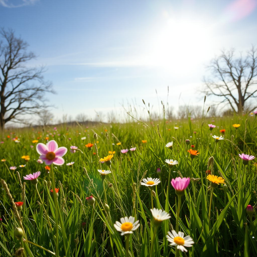 springtime joy vibrant landscape blooming flowers gentle breeze sunlit meadow picturesque beauty high detail