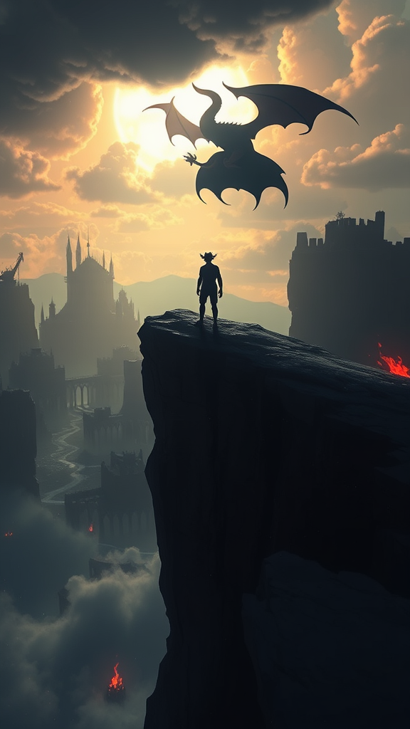 Standing poised on the precipice, destiny teeters in the balance with the shadow of the devil drawing near, illuminated by dramatic, otherworldly lighting as it weaves through the surreal expanse of a 5D realm; envisioned through the intricacies of Unreal Engine, the scene unfolds in the whimsical, eerie style reminiscent of "Don't Starve," with breathtaking concept artistry capturing the essence of Stanley Artgerm's visionary imagination.
