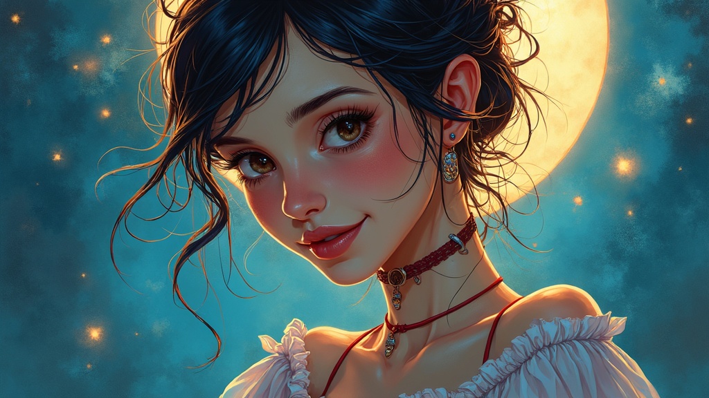 Sticker of a charming female teacher, digital illustration, inspired by Disney, embodying Rule 63, dynamic full body, flawless anatomy, captivating face, aesthetically pleasing, abstract beauty, radiantly beautiful, centered, engaging eye contact, nearly perfect, illuminated by moonlight, intricately detailed, reminiscent of watercolor painting, artstation quality, smooth blend of art by Carne Griffiths and Wadim Kashin, elegant, artful composition, high focus precision, concept art style, creativity infused yet grounded, enhanced by vibrant colors and artistic textures, inspired by dreamlike whimsy, seamless finish, artistic sophistication, animated, imaginative, vivid storytelling, gentle narrative grace.