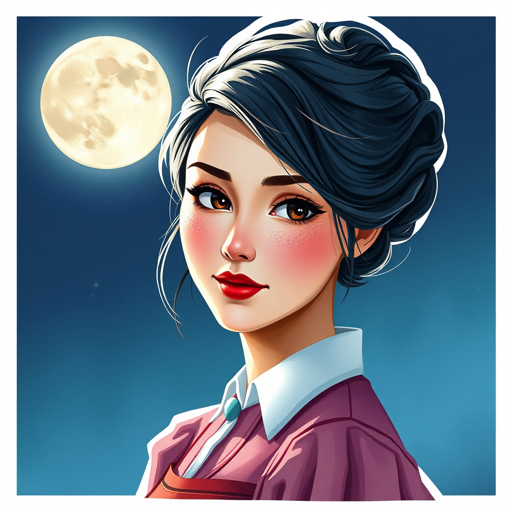 Sticker of a charming female teacher, digital illustration, inspired by Disney, rule 63, full body, impeccable anatomy, exquisite face, aesthetically pleasing, abstract beauty, captivating, centered, gazing at the viewer, nearing perfection, dynamic composition, bathed in moonlight, intricately detailed, watercolor technique, artstation showcase, concept art influence, smooth and sharp focus, illustration style reminiscent of Carne Griffiths and Wadim Kashin, with a focus on creativity and elegance, maintaining a harmonious blend of elements, vibrant yet refined, eye-catching digital art, balanced and cohesive design.