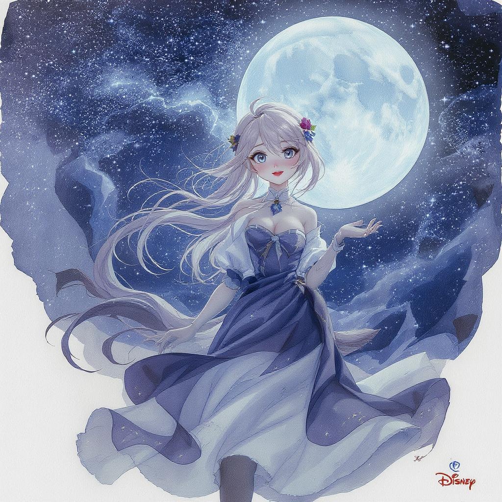 Sticker of an adorable female teacher, digital illustration, inspired by Disney, rule 63, full body with perfect anatomy and a captivating face, aesthetically pleasing abstract beauty, centered composition, looking directly at the viewer, approaching perfection under moonlight. The scene is dynamic, highly detailed, and resembles a watercolor painting, a blend of Artstation concept art with smooth, sharp focus. Inspired by the artistry of Carne Griffiths and Wadim Kashin, capturing grace and elegance, avoiding errors such as deformation or disfigurement. Maintaining a clear, vibrant, and harmonious depiction, the illustration features a whimsical and enchanting theme.