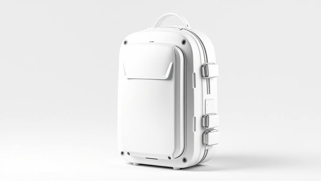 Streamlined urban explorer capsule backpack, futuristic hardcase design in pristine white, reminiscent of stormtrooper aesthetics, crisp and minimalistic product style on white backdrop, octane 4K render with intricate textures, inspired by Dieter Rams' design philosophy and Apple's signature design language, with subtle unique modifications.