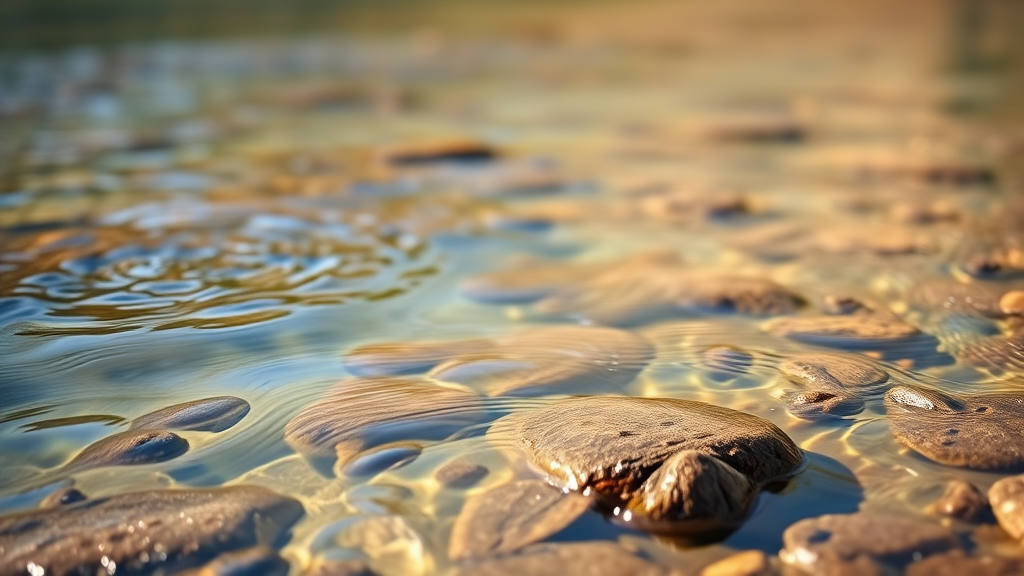 Streamside tranquility whispers in the gentle flow of water, where the mind finds peace amidst the stillness. Nature's breath infuses a dreamy calm in the clear, serene waters. Inspired by the serene artistry of Renato Muccillo and Andreas Rocha, the scene evokes a tranquil landscape that's both vivid and ethereal. The imagery is rich with vibrant colors and soft focus, capturing the essence of nature's quiet wonder, free of distractions or imperfections, inviting a deep sense of relaxation and oneness with the natural world.