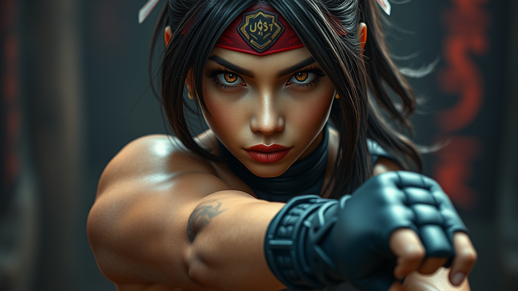 Street Fighter-inspired 1980s sci-fi video game characters featuring Chun-Li in a MODEL SHOOT STYLE with photography finesse, ARMORGIRL theme, hyper-detailed face crafted by Greg Rutkowski and Magali Villanueve, captivating eyes, athletic body, dynamic cinematic lighting, hyperrealism, focus on elegant composition, elevated quality, flawless anatomy, seamlessly capturing the essence of character design in high resolution, without imperfections, distractions, or extraneous elements, skillful execution in conveying beauty and strength, emphasis on creative expression and immersive styling.